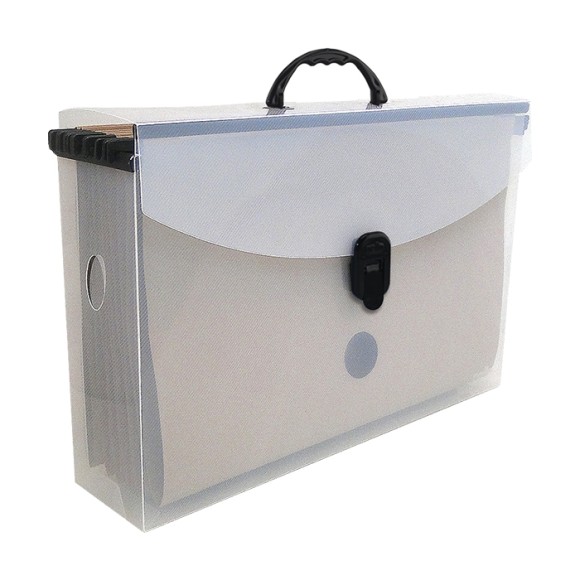 Maleta em polipropileno com 06 pastas suspensas kraft / Acompanha grampo plástico, visor e etiqueta / Tamanho: Oficio / Medidas da maleta: 390mm x 260mm x 90mm