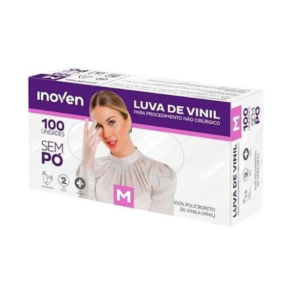 LUVA DE VINIL M SEM PÓ CAIXA C/100 UNIDADES INOVEN