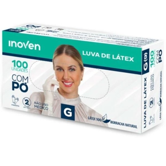 LUVA DE LÁTEX NÃO CIRURGICA G 100 UNIDADES C/PÓ INOVEN