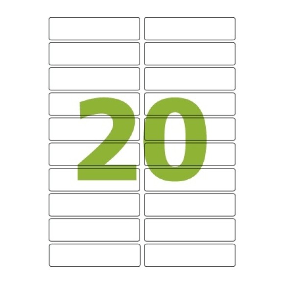 Tamanho da etiqueta: 25,4mm x 101,6mm / Etiquetas por folha: 20 / Embalagem com 25 folhas.