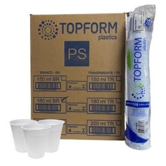 COPO PLÁSTICO DESCARTÁVEL DE 180 ML CAIXA COM 2500 UNIDADES TOPFORM
