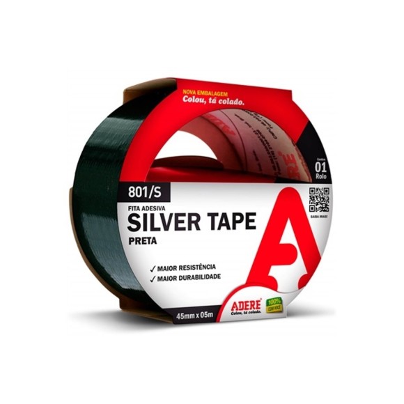 FITA ADESIVA SILVER TAPE PRETA 45MMx5M ADERE