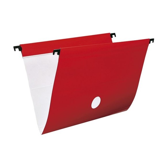 Pasta suspensa resistente plastificada (275g/m²). Acompanha visor e etiqueta, grampo plástico e hastes plásticas removíveis. Possui 8 posições para grampo e 2 posições para arquivo de saco plástico. Arquiva dois ou mais documentos na mesma pasta e possui visualização de documentos e sistema de circulação de ar dentro da pasta através do furo central.