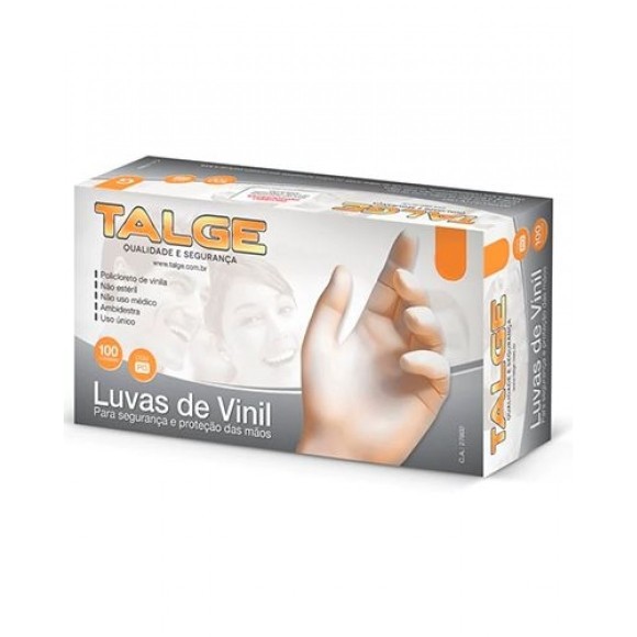 LUVA DE VINIL DESCARTÁVEL P SEM PÓ 100 UNIDADES TALGE