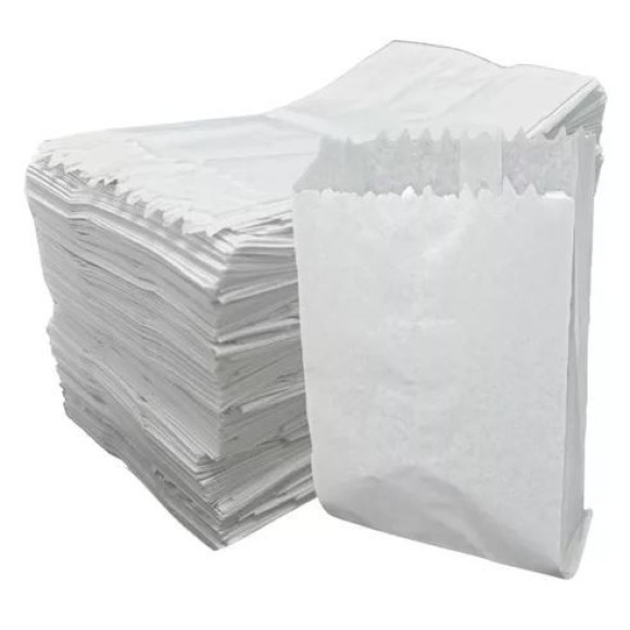 Detalhes: Saco de Papel Branco Monolucido / Tipo: Pipoca 2 / Quantidade: 500 sacos / Medida: 24cm x 15,5cm (aberto) * 14,5cm x 7,5cm (fechado)