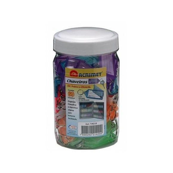 Cada chaveiro possui uma etiqueta interna para identificação da chave / 60 chaveiros / Cores sortidas