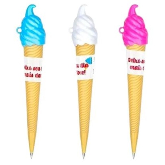 Lapiseira em Formato de Sorvete de Casquinha / Grafite: 0,7 / Cores: Rosa, Azul e Branco / Registro Inmetro: 003324/2018 ocp 0133