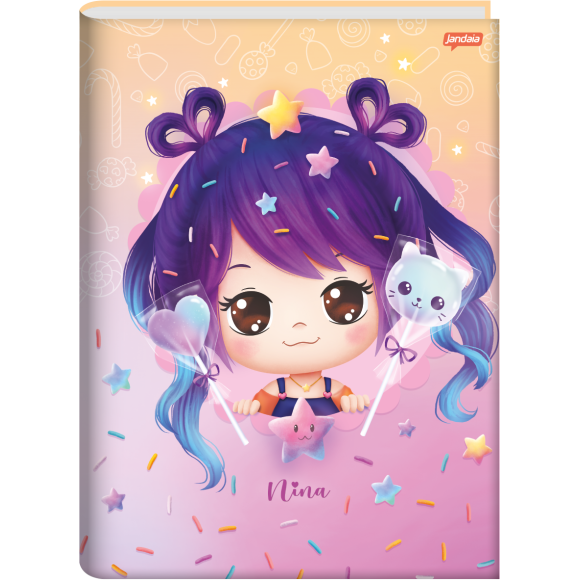 Detalhes: Capa dura / Parte interna da capa decorada / Índice na parte interna da capa / Folha de adesivos dupla / Folhas pautadas / Formato: 200mm x 275mm / Gramatura: 56g/m² / 48 Folhas.