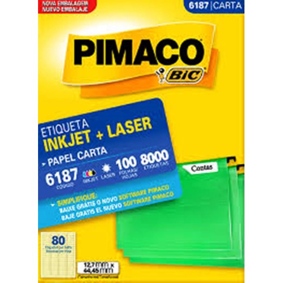 Etiqueta retangular / Cor da etiqueta: Branca / Tamanho da etiqueta: 12,7mm x 44,45mm / Etiquetas por folha: 80 / Embalagem com 100 folhas e 8000 Etiquetas