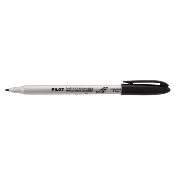 Marcador permanente / Cor: Preto / Tinta resistente à água / Indicado para uso em CD, DVD, plásticos, vinil, acrílico, vidros e filmes / Possui ponta de poliéster de 2.0mm.