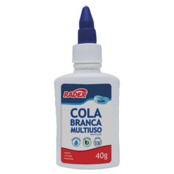 Cola líquida 40g Radex / Lavável / Não tóxica / Ideal para trabalhos manuais de colagem e para Slime / Produto Certificado INMETRO (Artigo Escolar/Segurança) – Registro 003173/2014